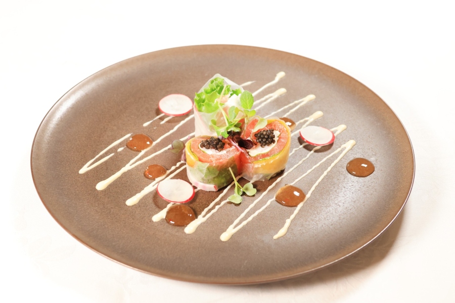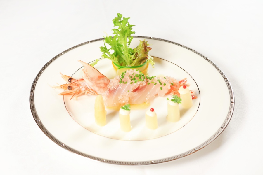 | メニュー | ・メイプルサーモンと蟹の生春巻き ・ブリティッシュヒルズオリジナル ふかひれスープ ・”常磐もの”旬魚のポワレ 黄柚子バターソース ・ソルベ ・和牛天栄産味噌漬けの直火焼き サルサ添え ・フランベデザート 鏡石町産苺 ・珈琲または紅茶 |