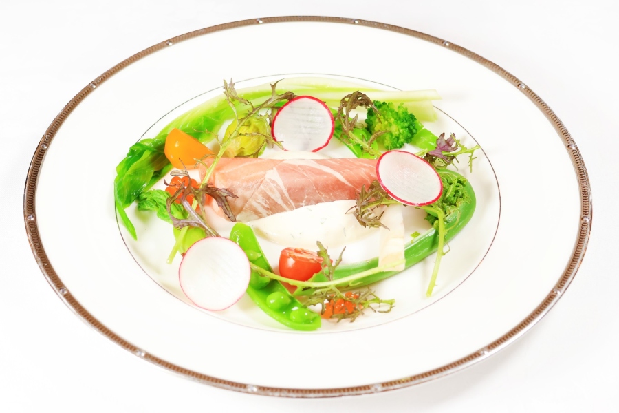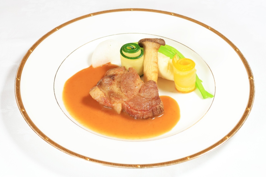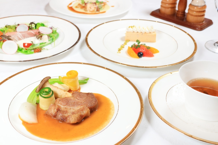 | メニュー | ・アトランティックサーモンのコンフィ 季節の野菜添え ・牛ほほ肉入りコンソメスープ ・旬魚のクルスティアン ポテトクリーム ・麓山高原豚のソテー ブルーチーズ風味 ・アーモンドとメイプルのセミフレッド ・珈琲または紅茶 |
