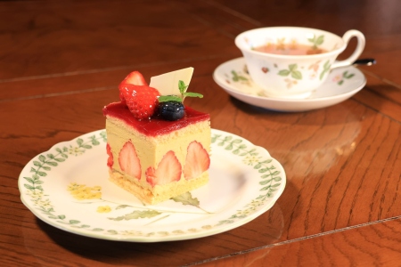 イチゴを使用したケーキで贅沢なティータイムをお過ごしください。