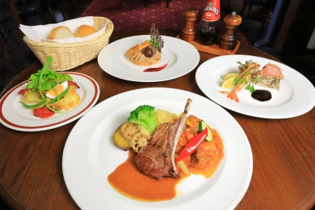 ご夕食には、旬の食材を使用したパブディナーをご提供いたします。